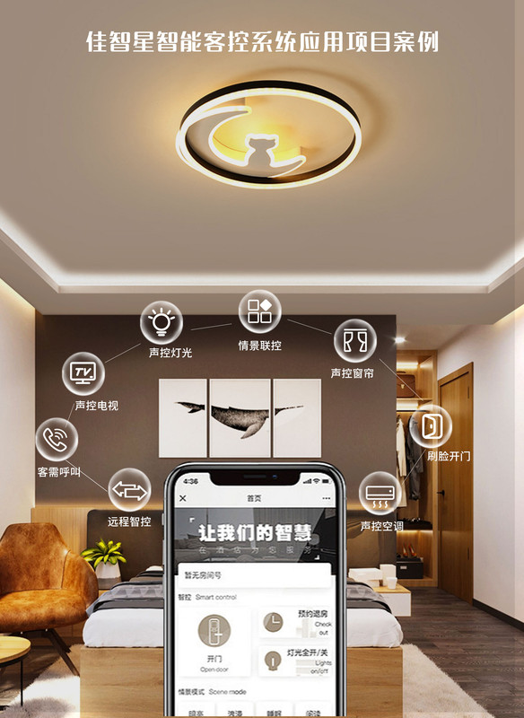 • 客房智能管理控制系統(tǒng)在酒店、賓館房間里可以通過智能化、節(jié)能化的高科技技術(shù)實現(xiàn)酒店客房的智能管理與控制。讓入住的酒店客人更加方便、安全,服務倍感溫馨親切,同時也給酒店方帶來智能化系統(tǒng)的管理。客控系統(tǒng)不僅僅提高酒店管理和服務水